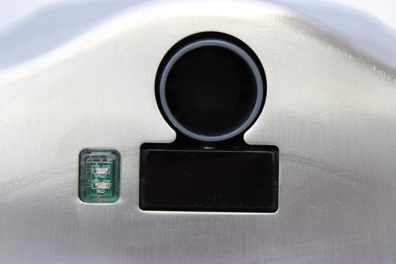Kruhová tryska je po stranách vybavena dvěma indikačními diodami. Pokud je osoušeč v „standby“ režimu, svítí červená LED. zelená LED svítí v okamžiku, když je osoušeč v provozu.