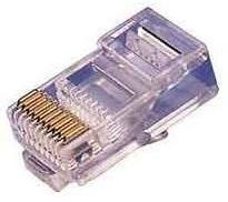 Krimpovací konektor RJ-45 pro vytváření strukturované kabeláže pomocí kroucené dvojlinky (UTP) lanko (licnu) do přenosové rychlosti 100Mbps. K jeho osazení jsou potřeba speciální kleště.