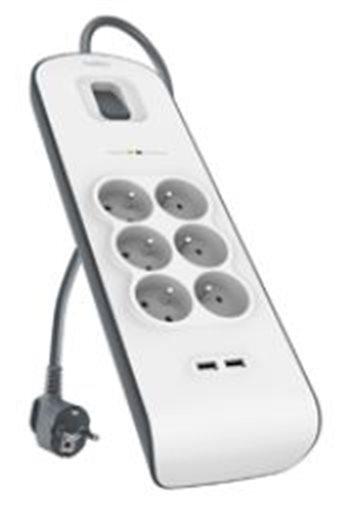 Přepěťová ochrana BELKIN SurgeStrip, 650J, 2xUSB, bílá/šedá (white/gray)
