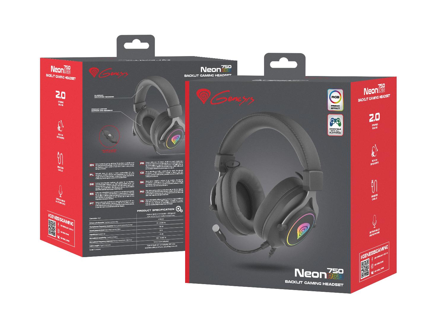 Genesis Neon 750 RGB je moderní stereofonní náhlavní souprava s velkými 50mm měniči a odnímatelným mikrofonem umožňujícím držet krok s konkurencí. Díky vysoce kvalitním materiálům v kombinaci s fenomenálním designem se Neon 750 RGB dokonale hodí k vaší herní stanici a dodá jí jedinečný charakter. Dostupné jsou v černém a bílém provedení.