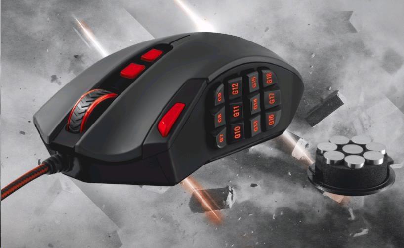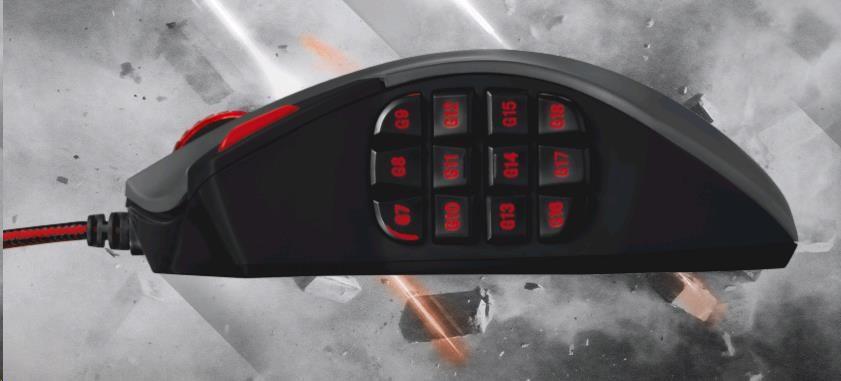 Laserová herní myš s 18 programovatelnými tlačítky určená pro MMO hry