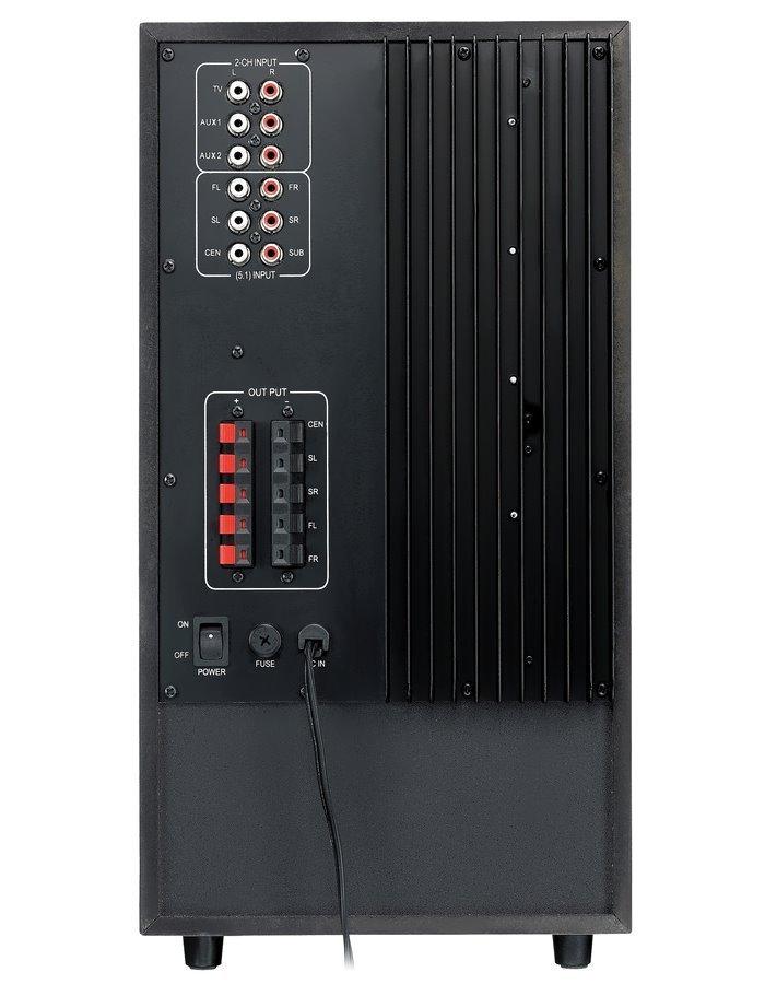 Systém reproduktorů v konfiguraci 5.1 nabízí celkový výkon 200 W. Sestava v dřevěném provedení je tvořena kvalitním subwooferem s 8" reproduktorem, který disponuje integrovaným zesilovačem a výkonem 75 W. Subwoofer je doplněn čtyřmi satelity a jedním středovým reproduktorem s výkonem 4 x 24 W + 1 x 30 W. Součástí balení je napájecí adaptér 100-240 V a dálkové ovládání.