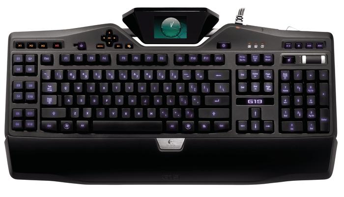 Herní klávesnice Logitech® G19 se vyznačuje barevným displejem LCD GamePanel™ k zobrazení stavu hry, komunikačních dat VOIP a mnoho dalšího a tím vás vyzbrojuje pokročilou herní technologií. Mezi další funkce patří možnost výběru podsvícení znaků k osobnímu nastavení klávesnice, kterou tak lze lépe sladit s ostatním počítačovým a herním vybavením, dvanáct programovatelných kláves se třemi makry na klávesu, které umožňují naprogramovat až 36 samostatných stisknutí kláves nebo složitá makra, a dva vysokorychlostní napájené porty USB 2.0 poskytující možnost přenášet data do/z periferních zařízení, jako jsou přehrávače MP3 a jednotky flash, a současně i možnost nabíjet zařízení používající baterie. Navíc lze k provádění složitých vícenásobných akcí využít vstupní kombinaci až pěti kláves současně.