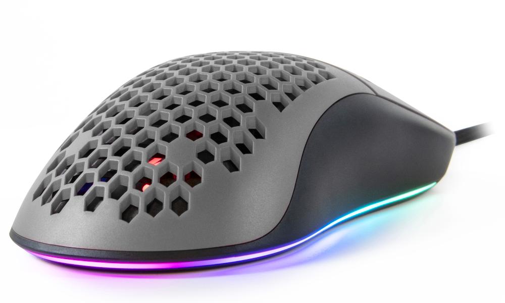 Ultralehká herní myš disponující 7 programovatelnými tlačítky a vysoce přesným optickým senzorem Pixart 3389 s rozlišením až 16000 dpi. Kryt v designu plástve snižuje celkovou hmotnost, zlepšuje odvod tepla, a tím zajistí i pevnější uchopení myši. Herní design poté doplňuje nastavitelné RGB podsvícení. Kvalitní spínače Omron vydrží více než 20 milionů kliknutí. Připojení je realizováno skrze opletený USB kabel.