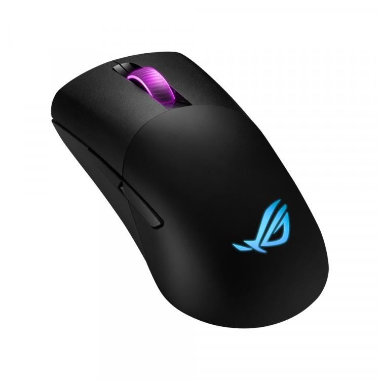 ASUS ROG KERIS WIRELESS lehká bezdrátová herní myš FPS s konektivitou ve třech režimech (kabelová / 2,4 GHz / Bluetooth), speciálně vyladěný snímač ROG 16 000 dpi, vyměnitelná boční tlačítka, ROG Omni Mouse Feet, ROG Paracord a Aura Sync RGB osvětlení.