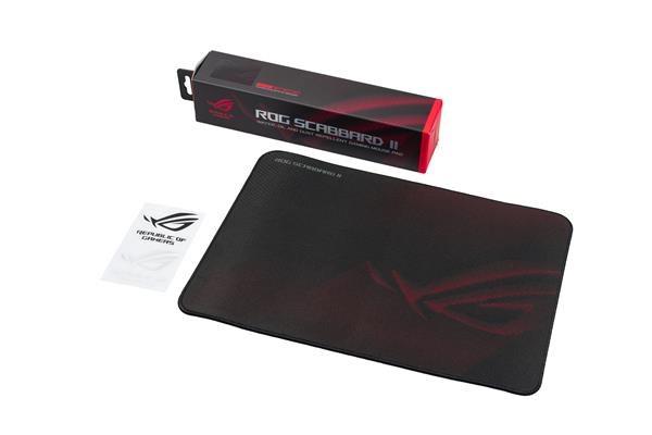 1 x herní podložka pod myš ROG SCABBARD II MEDIUM 1 x nálepka s logem ROG |