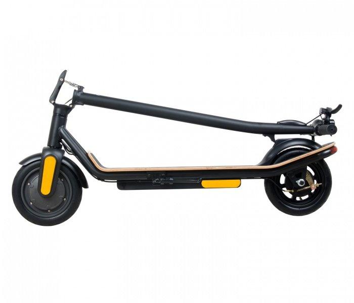 Moderní skládací elektrokoloběžka nabízí výkon 350 W, který bohatě stačí na jízdu až 25 km/h. Díky kvalitní konstrukci a 8,5" nafukovacím pneumatikám s vynikajícím tlumením nárazů zajistí bezpečnou a pohodlnou jízdu i po nerovném povrchu. Na delší trase můžete využít také tempomat. Přední a zadní LED světlo spolu s bočními odrazkami zaručí maximální bezpečnost i za tmy. Ve výbavě samozřejmě nechybí ani LCD displej s ukazatelem rychlosti, kapacity baterie i jízdního režimu umístěný na řídítkách. Baterie s kapacitou 7,5 Ah postačí na pohodlný dojezd až 25 km.