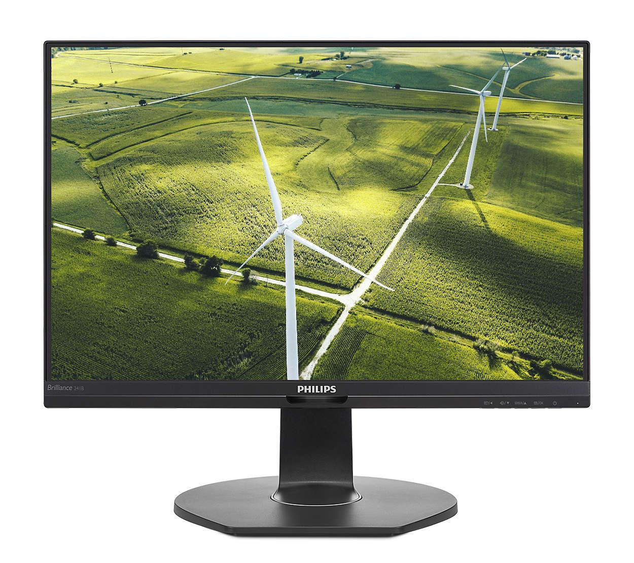 Ekologický 24palcový monitor Philips je navržen pro dlouhodobou produktivitu. Skvělý a energeticky úsporný design představuje novou úroveň úspory energie. Snímače PowerSensor a LightSensor dále snižují spotřebu energie a zároveň přináší ostrý obraz.