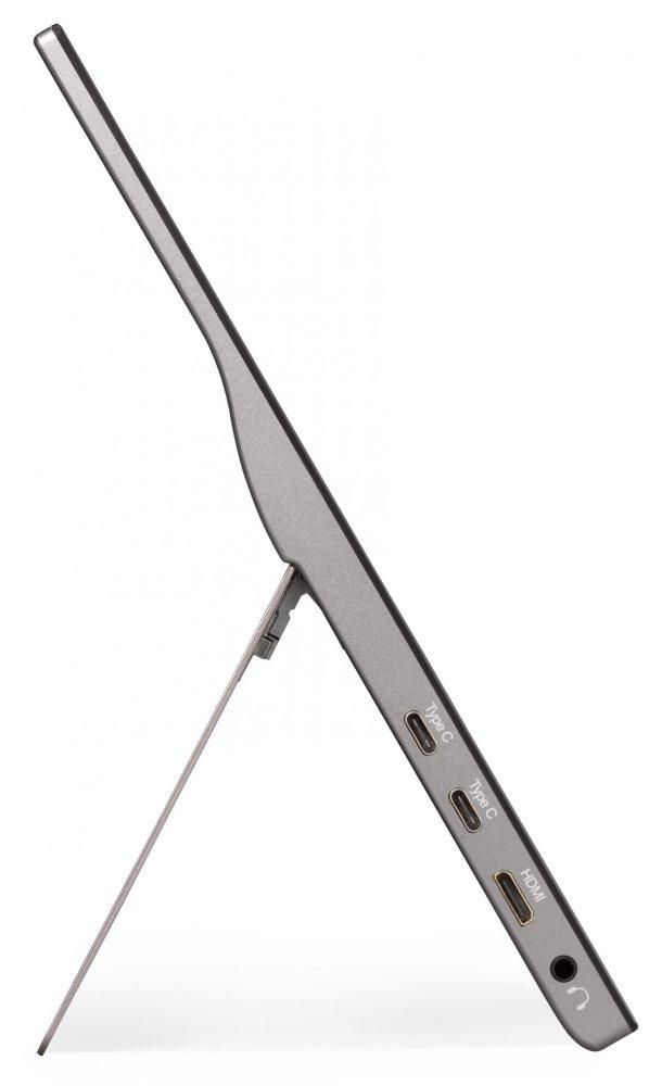 Přenosný dotykový monitor s úhlopříčkou 15,6" a Full HD rozlišením 1920 x 1080 bodů. Nabízí jas 250 cd/m2 a kontrastní poměr 800:1. Příjemné jsou také pozorovací úhly 178° horizontálně i vertikálně. Základní ozvučení zajišťuje dvojice reproduktorů s celkovým výkonem 1,6 W. Pro připojení k notebooku vyžaduje pouze jediný kabel USB typu C, a to jak pro video signál, tak i pro napájení.