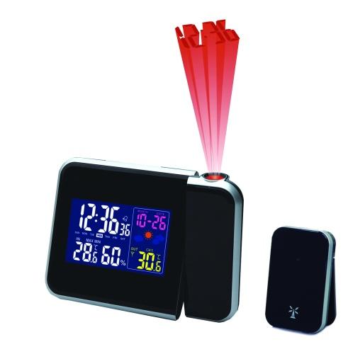 Digitání budík, meteostanice s projekcí a teploměrem, 1 bezdrát. čidlo, LCD + projekce na zeď, vlhkost v místnosti, předpověď počasí