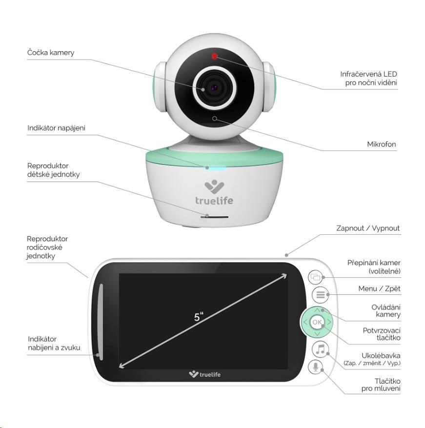 TrueLife NannyCam R360 je digitální video chůvička, která skutečně vidí do každého rohu. Pomocí horizontálního i vertikálního otáčení kamery a 5 palcovým displejem máte naprostý přehled nad celým dětským pokojíčkem. S chůvičkou lze mít spárované až dvě kamery najednou a sledovat tak dění ve více místnostech naráz. Se stabilním signálem do 300 metrů a funkcemi jako je automatický noční mód a pokojový teploměr, vám neunikne jediné zasmání nebo škytnutí vašeho drobečka. Potěší vás jistě i možnost oboustranné komunikace nebo výběr ukolébavek, které můžete při pláči miminku vzdáleně pustit z rodičovské jednotky.