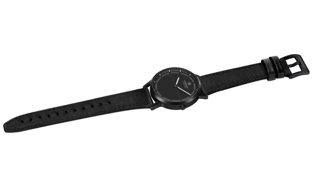 Hybridní chytré hodinky v luxusním provedení s řadou chytrých funkcí. Pouzdro z nerezové oceli a safírové sklíčko zajistí potřebnou odolnost. Řemínek je vyroben z nylonu a pro maximální komfort je doplněný koženým povrchem. Díky dotykovému sklíčku můžete jednoduše ovládat vaši hudbu či spoušť fotoaparátu. Integrovaný G-senzor automaticky detekuje vaše pohyby a odesílá data prostřednictvím technologie Bluetooth do mobilní aplikace pro kompletní přehled. Samozřejmostí je upozornění na příchozí notifikace prostřednictvím vibrací. K dispozici je navíc také automatická synchronizace místního času při cestování mezi různými časovými pásmy. Hodinky jsou vodotěsné do 5 ATM a nabízí výdrž až 6 měsíců díky výměnné baterii.