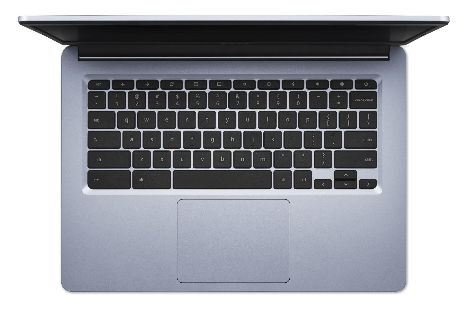 Notebook Acer Chromebook 314 je vybaven 14" displejem o šířce pouhých 7,3 mm, který je navržen pro práci za jasného světla. Díky dlouhé výdrži baterie, rychlému procesoru Intel® a bleskovému připojení Wi-Fi 5 (802.11ac) budete online během okamžiku.