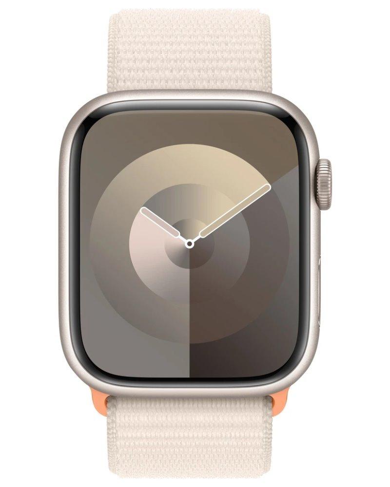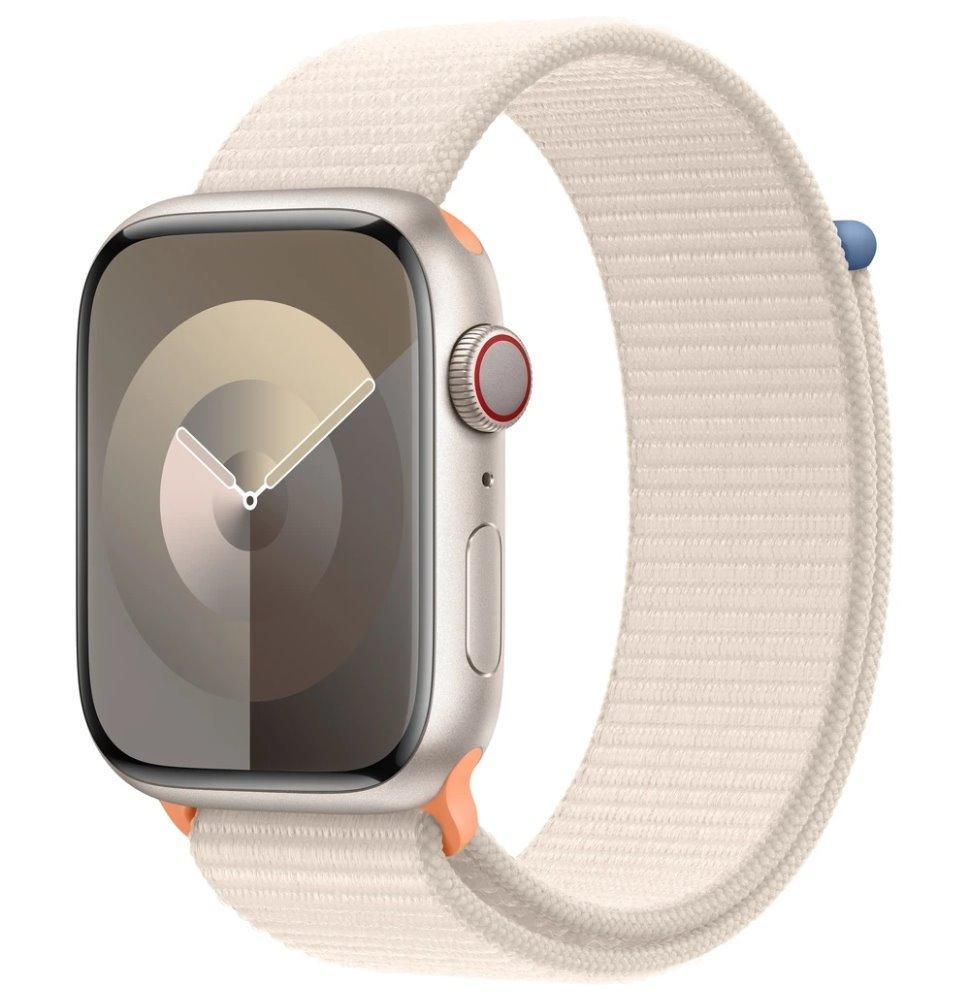 Chytré hodinky APPLE Watch Series 9 GPS + Cellular 45mm Starlight Aluminium Case with Starlight Sport Loop, stříbrno-bílá