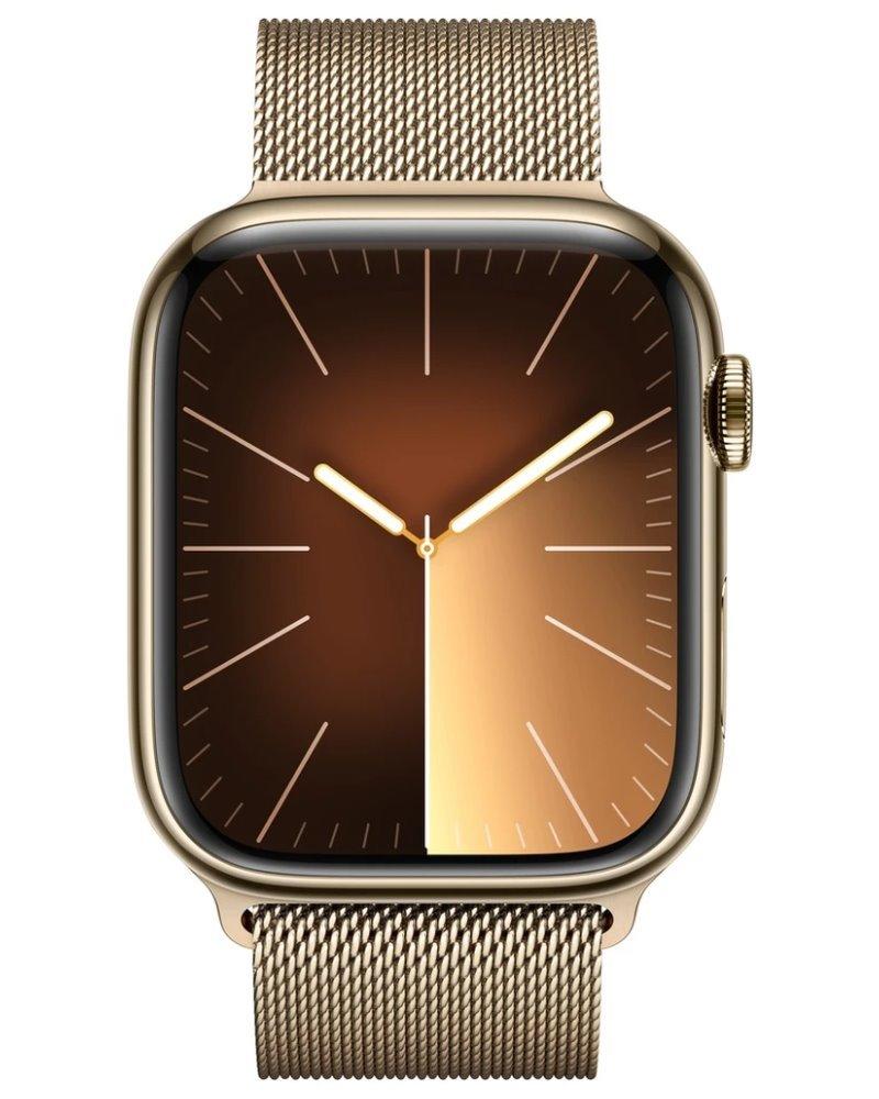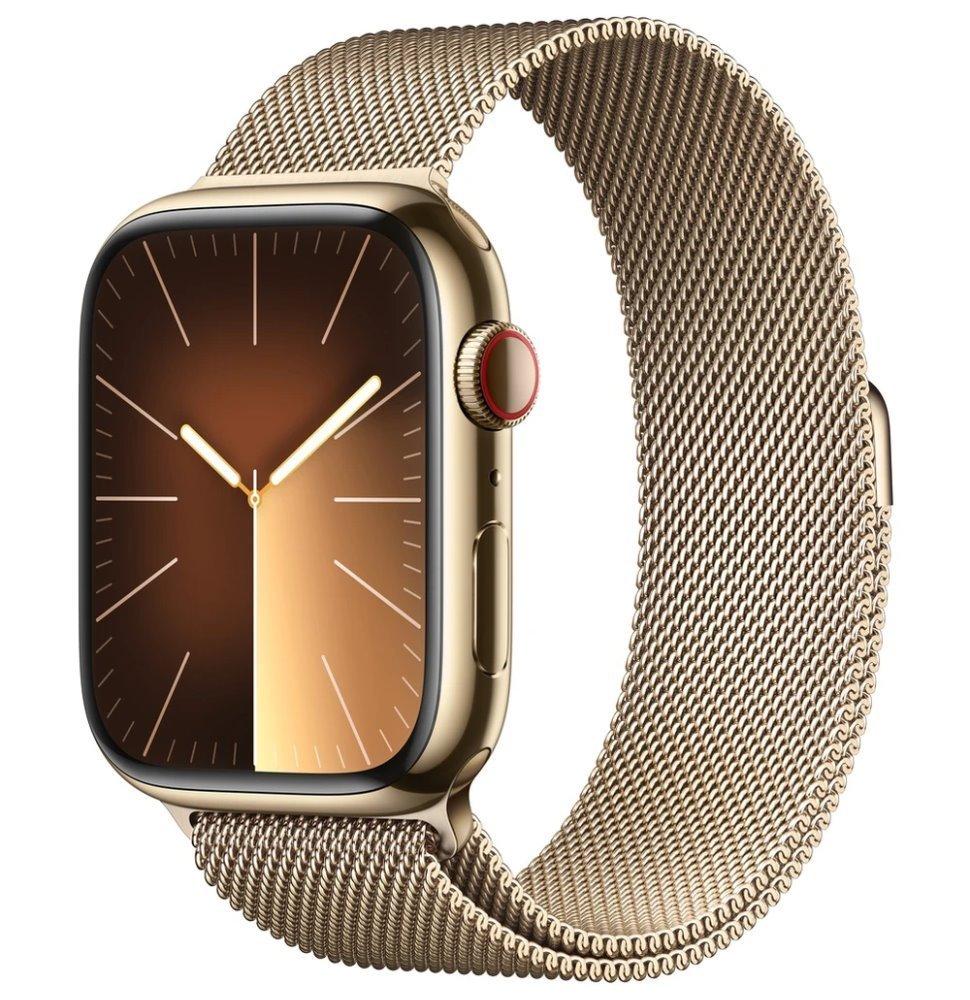 Chytré hodinky APPLE Watch Series 9 Cellular 45mm Zlatá ocel se zlatým milánským tahem