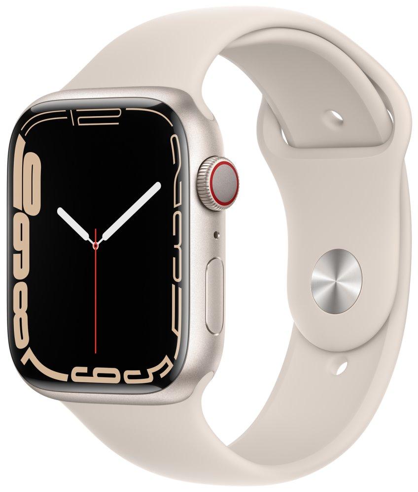 Chytré hodinky APPLE Watch S7 GPS Cellular, 45mm hvězdně bílý hliník s hvězdně bílým sport řemínkem
