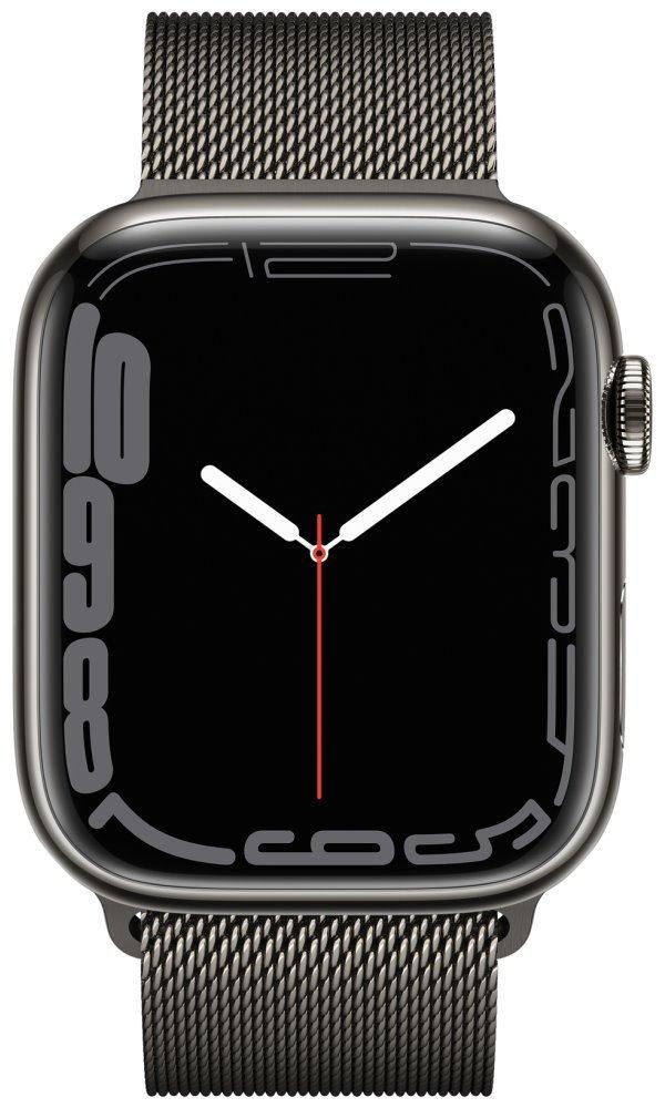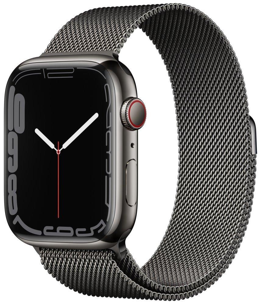 Chytré hodinky APPLE Watch S7 GPS Cellular, 45mm grafitový nerez s grafitově šedým milánským tahem