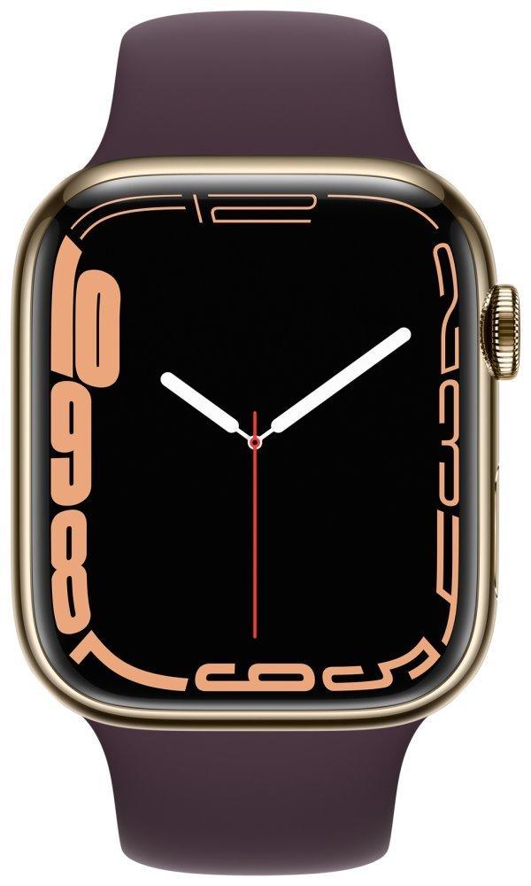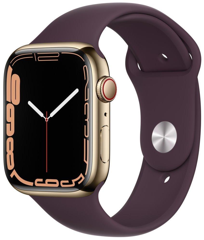 Chytré hodinky APPLE Watch S7 GPS Cellular, 45mm zlatý nerez s višňovým sport řemínkem