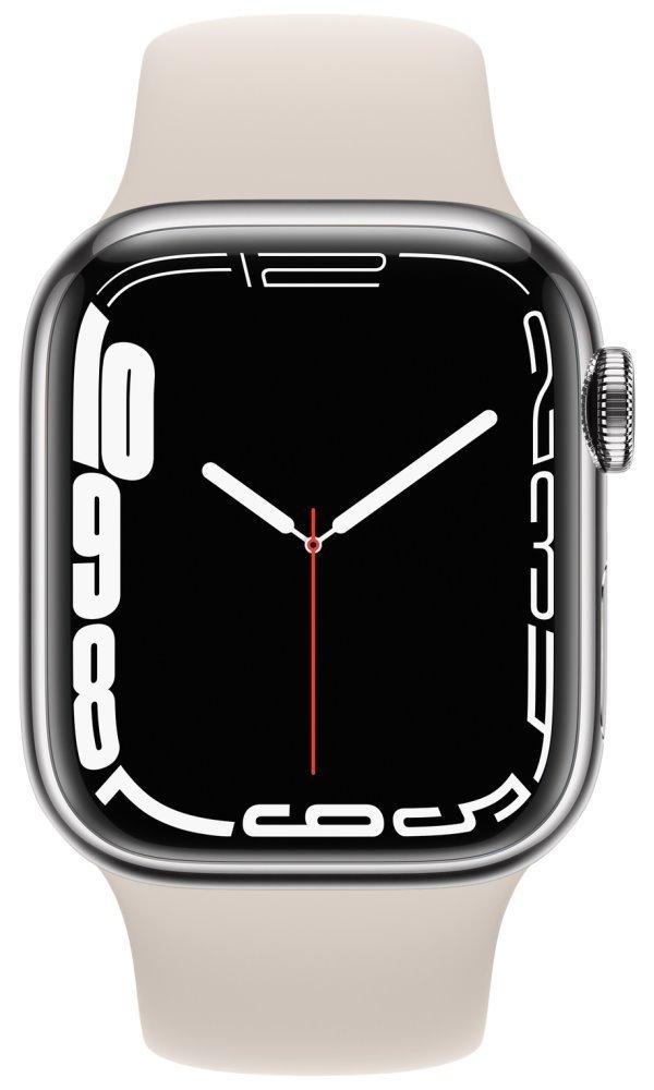 Chytré hodinky APPLE Watch S7 GPS Cellular, 41mm stříbrný nerez s hvězdně bílým sport řemínkem