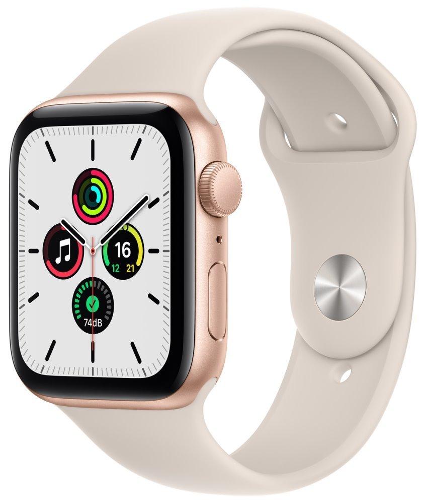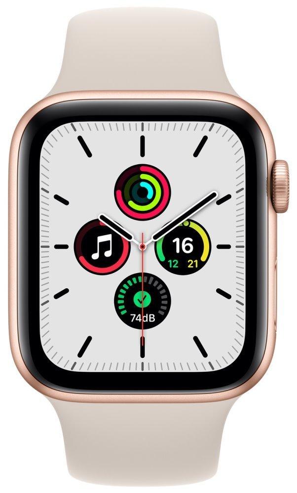 Chytré hodinky APPLE Watch SE GPS, 44mm zlatý hliník s hvězdně bílým sportovním řemínkem