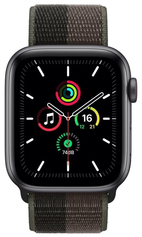 Chytré hodinky APPLE Watch SE GPS Cellular, 44mm šedý hliník s šedým provlékacím sport řemínkem