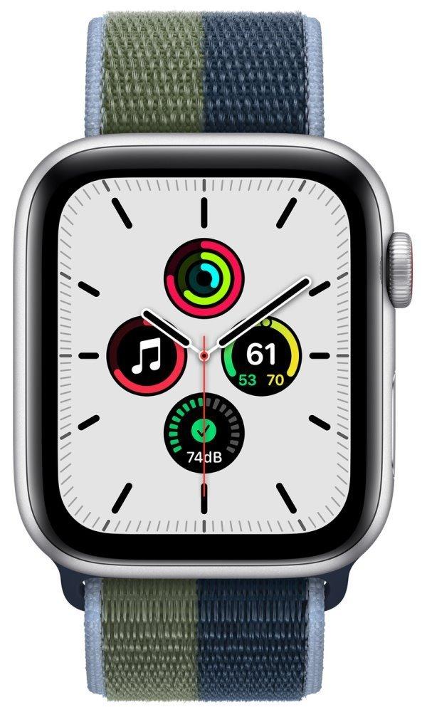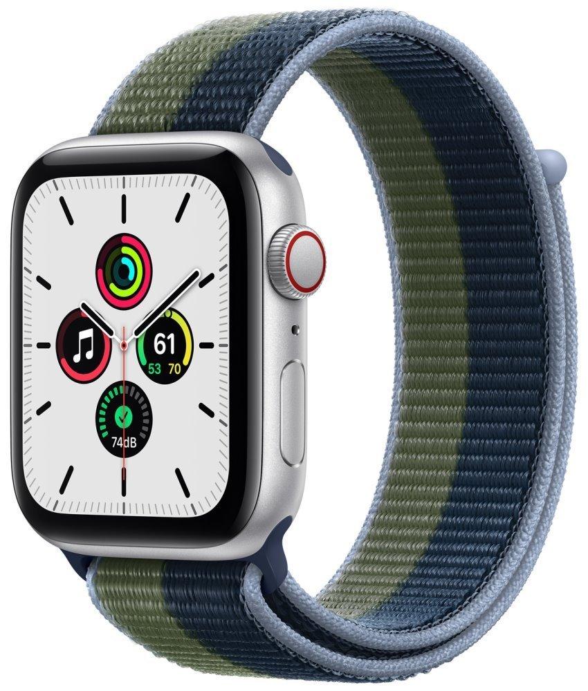 Chytré hodinky APPLE Watch SE GPS Cellular, 44mm stříbrný hliník s modrozeleným provlékacím sport řem.