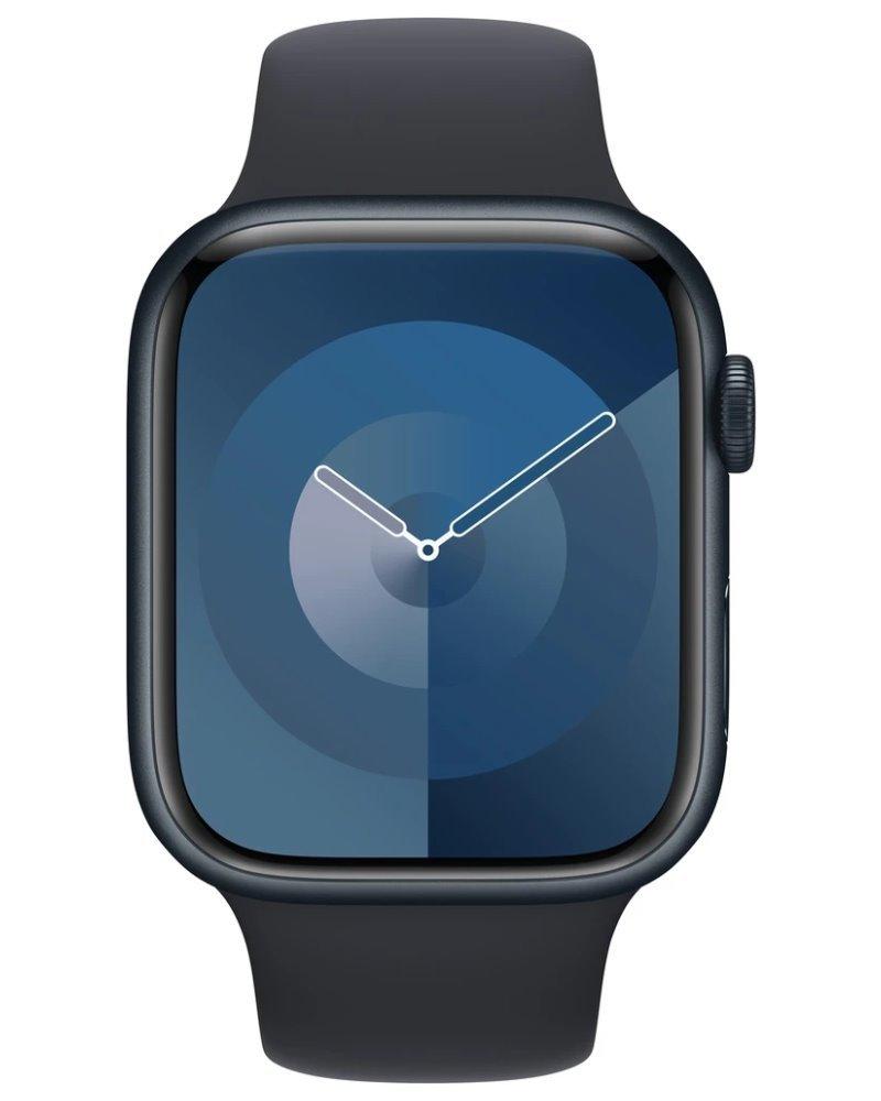 Chytré hodinky APPLE Watch Series 9 45mm Temně inkoustový hliník s temně inkoustovým sportovním řemínkem S/M