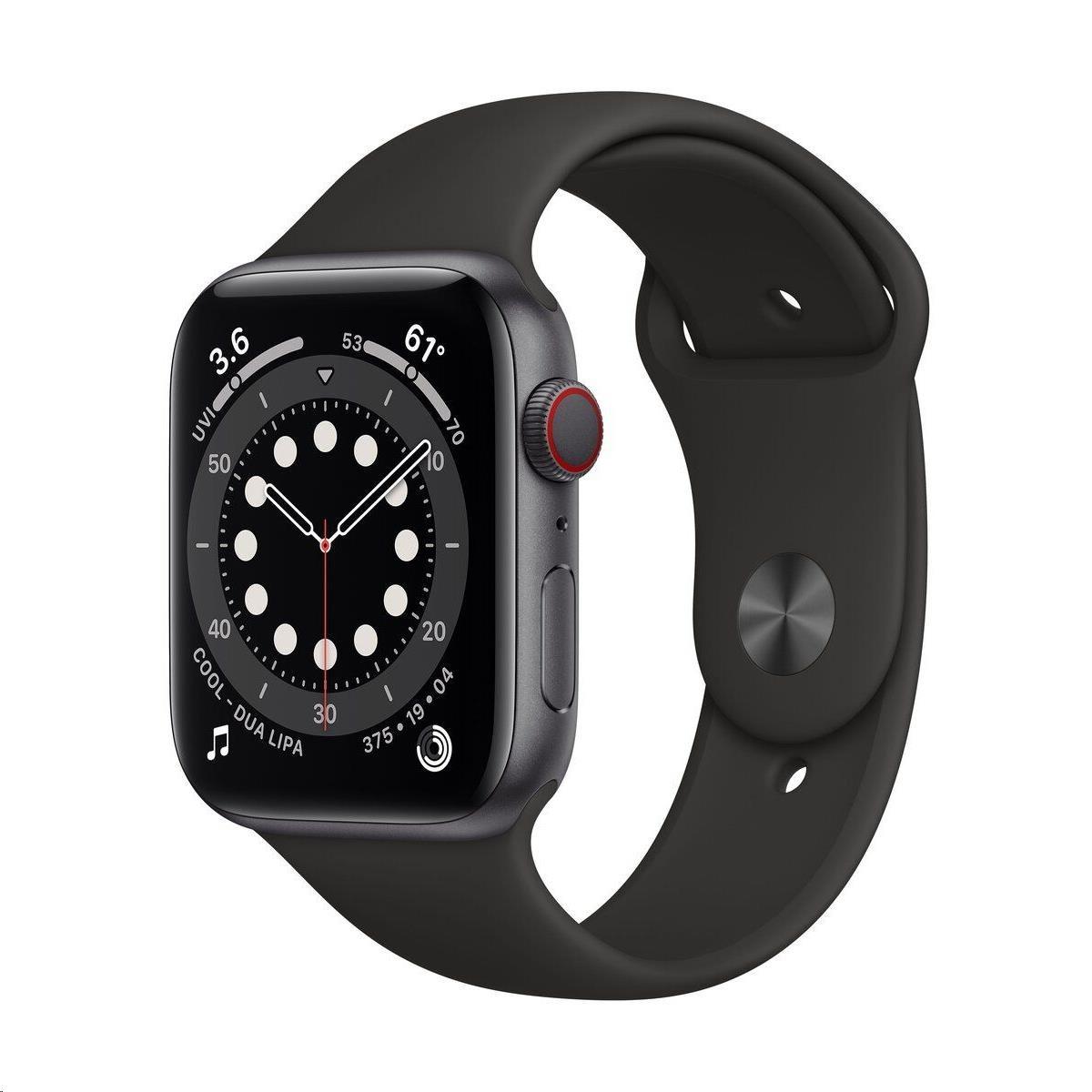 Chytré hodinky APPLE Watch Series 6 Cellular 44mm Vesmírně šedý hliník sČerným sportovním řemínkem