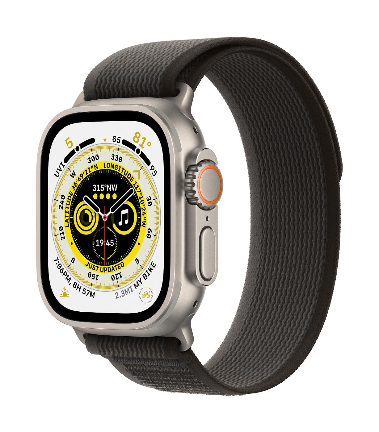 Chytré hodinky APPLE Watch Ultra GPS + Cellular, 49mm Titanium Case with Black/Gray Trail Loop - S/M