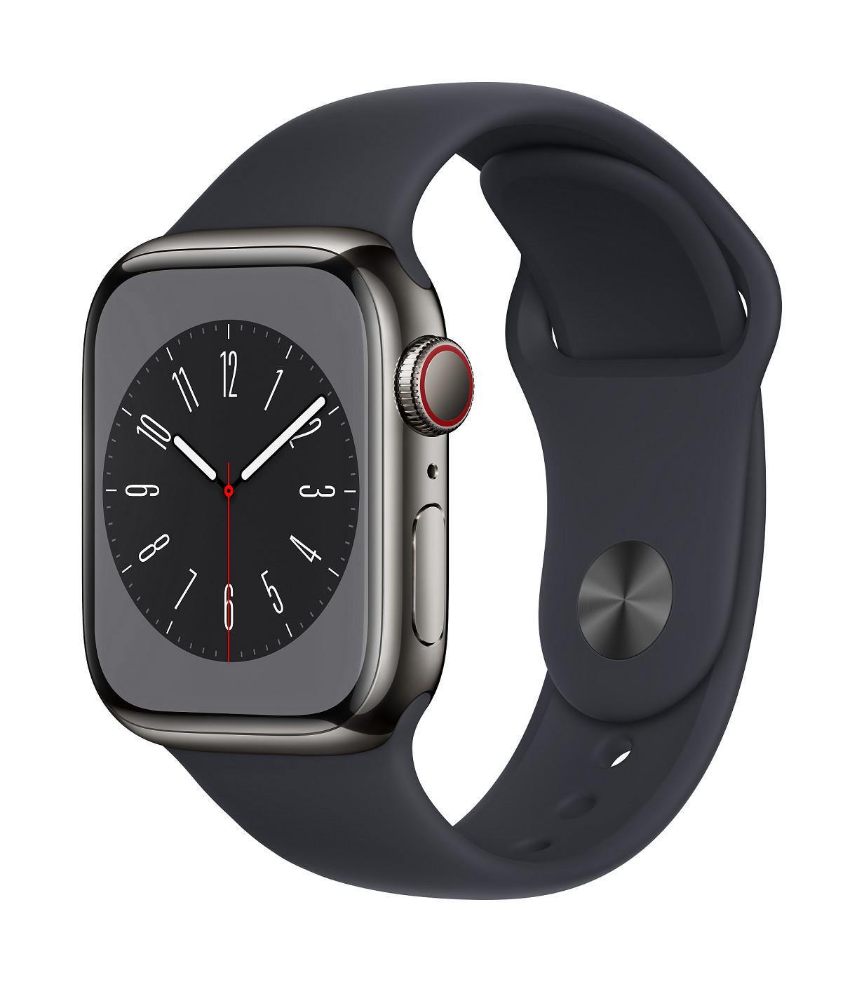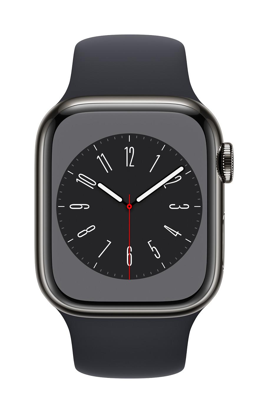 Chytré hodinky APPLE Watch Series 8 GPS + Cellular 41mm Graphite Stainless Steel Case with Midnight Sport Band