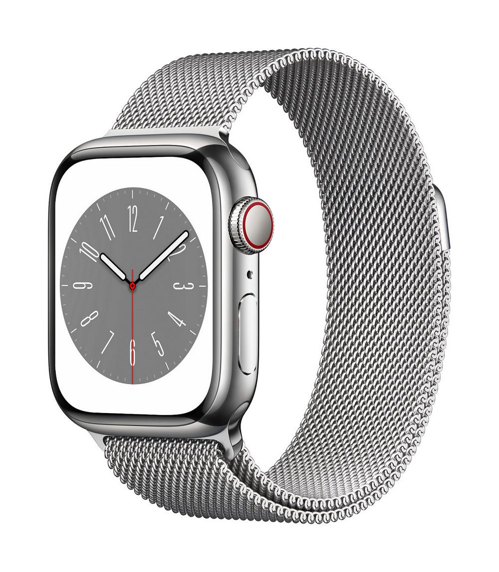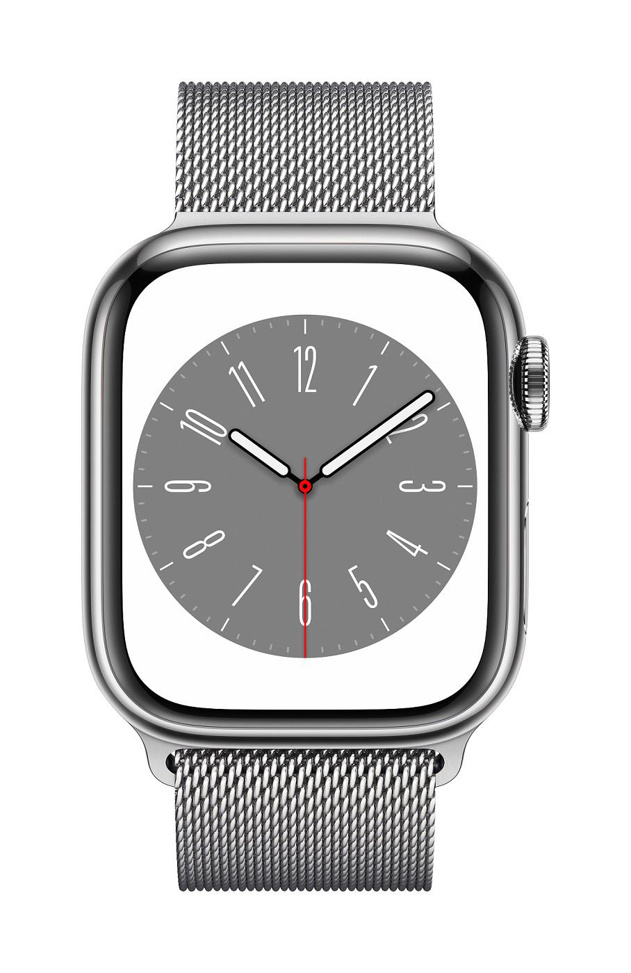 Chytré hodinky APPLE Watch Series 8 GPS + Cellular 41mm Silver Stainless Steel Case with Silver Milanese Loop