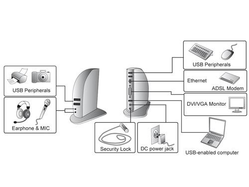 elegantnímu připojení periférií k PC/NB pomocí jednoho USB 2.0 portu. Na