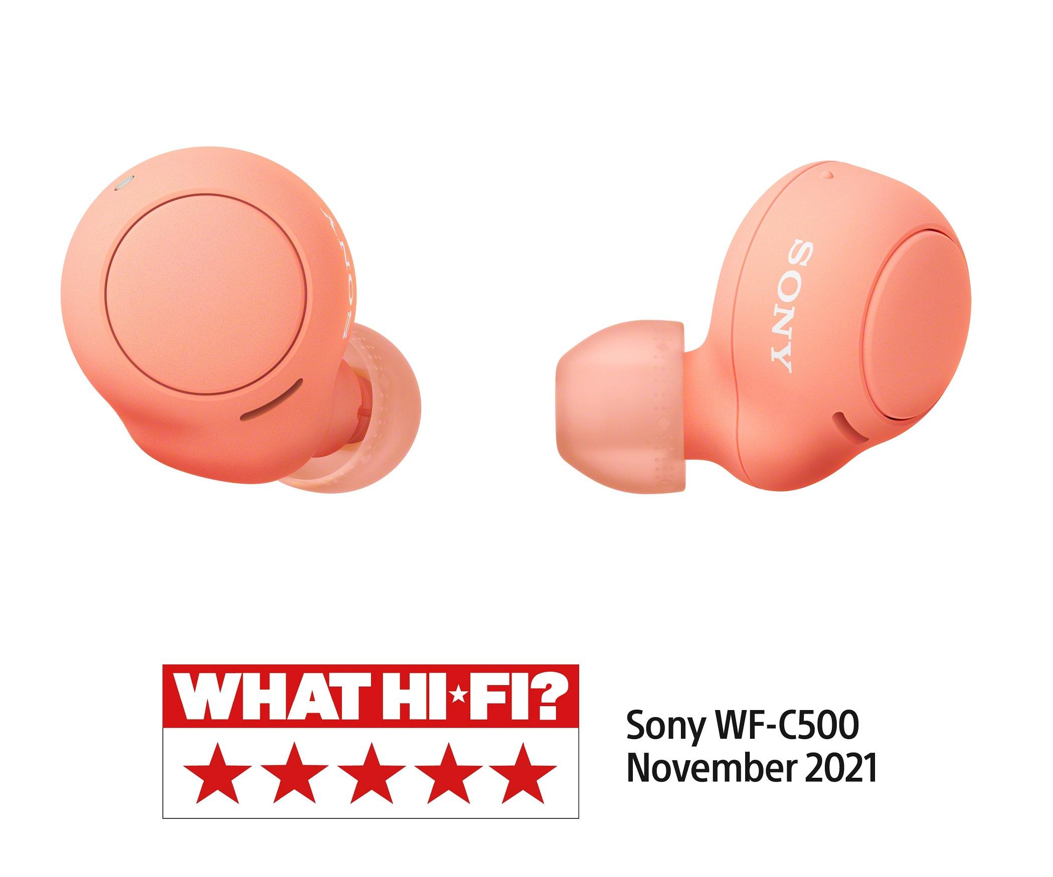 Sluchátka Sony True Wireless WF-C500 získala 5 hvězd v prestižním ocenění WHAT HIFI, více na odkazu: https://www.whathifi.com/reviews/sony-wf-c500