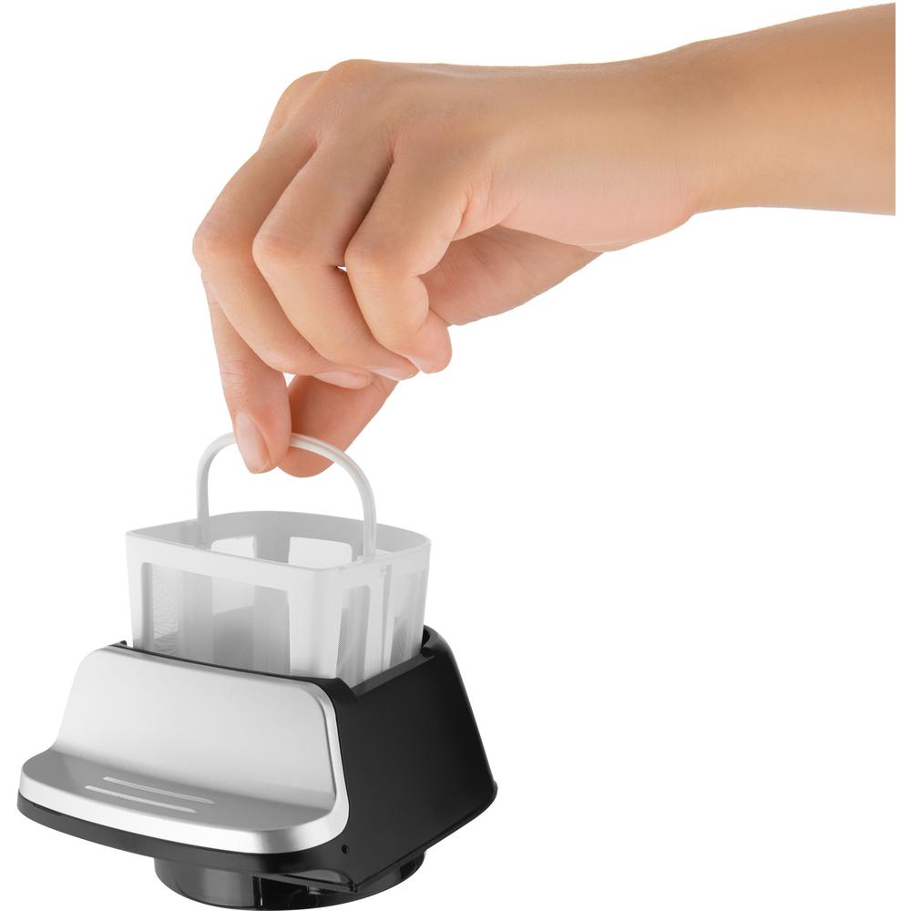 Výborně funguje i bez jednorázových filtrů. Disponuje filtrem pro opakované použití, který je snadno omyvatelný a nevstřebává do sebe chutě a vůně nápojů. Kompaktní tělo v líbivém černém provedení s oblými tvary se skvěle hodí do každého interiéru. Díky nízké hmotnosti a malým rozměrům se snadno přenáší a nezabírá mnoho místa. Integrovaná nádobka na vodu (0,3 l) pojme ideální množství vody pro 2 šálky lahodného nápoje.