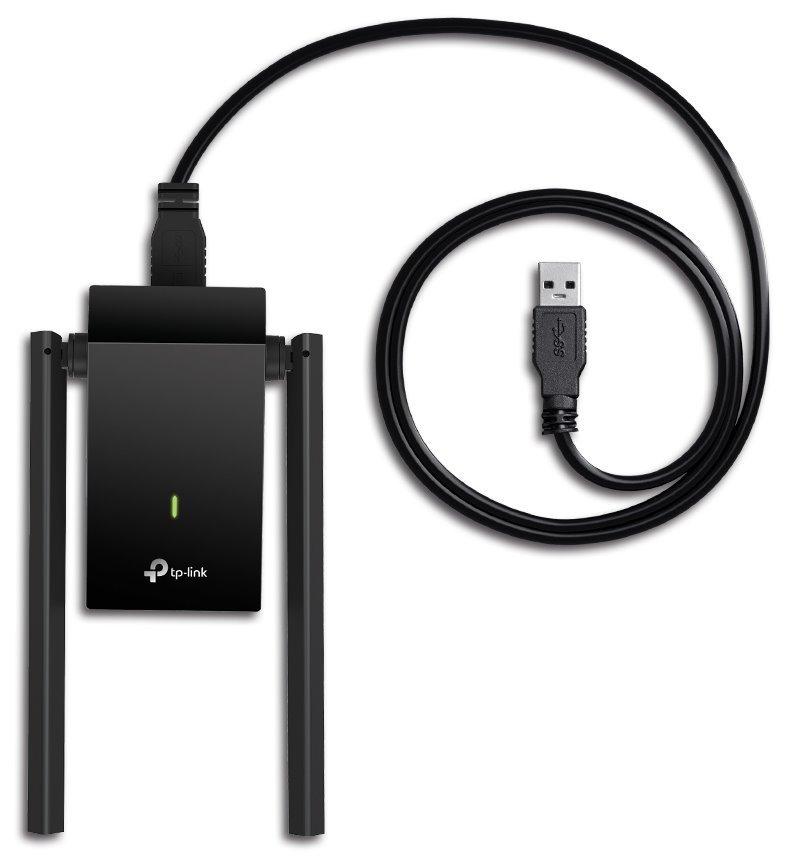 Archer T4U PlusAC1300 High Gain Dual Band Wi-Fi USB AdapterAC1300 High Gain Dual Band Wi-Fi USB AdapterSPEED: 867 Mbps at 5 GHz + 400 Mbps at 2.4 GHzSPEED: 867 Mbps at 5 GHz + 400 Mbps at 2.4 GHzSPEC: 2× High Gain External Antennas, USB 3.0, Extension CableFEATURE: MU-MIMO