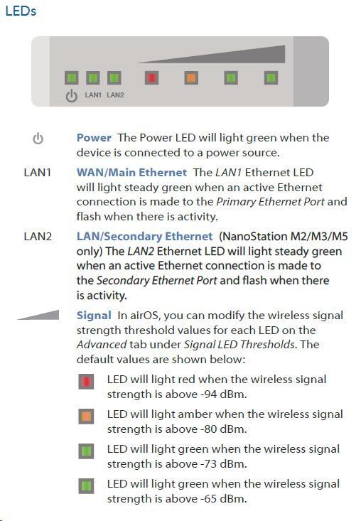 NanoStation M2 je výkonná kompletní venkovní jednotka včetně 2 x 11 dBi antény (MIMO) pro pásmo 2,4 GHz. Jednotka umožňuje komunikaci reálnou rychlostí až 150 Mbps. Další výhodou je vedle vysoké přenosové rychlosti díky standardu 802.11n využití časového multiplexu TDMA, což umožňuje na jednotku v režimu AP připojit více než 300 klientů a nízké latence. Oproti předchůdci NanoStation2 má silnější procesor taktovaný na 400 MHz a větší paměť. Součástí balení je i 15 V napájecí zdroj a PoE injector, který obsahuje resetovací tlačítko pomocí kterého lze také NS uvést TFTP módu pro obnovu firmwaru.