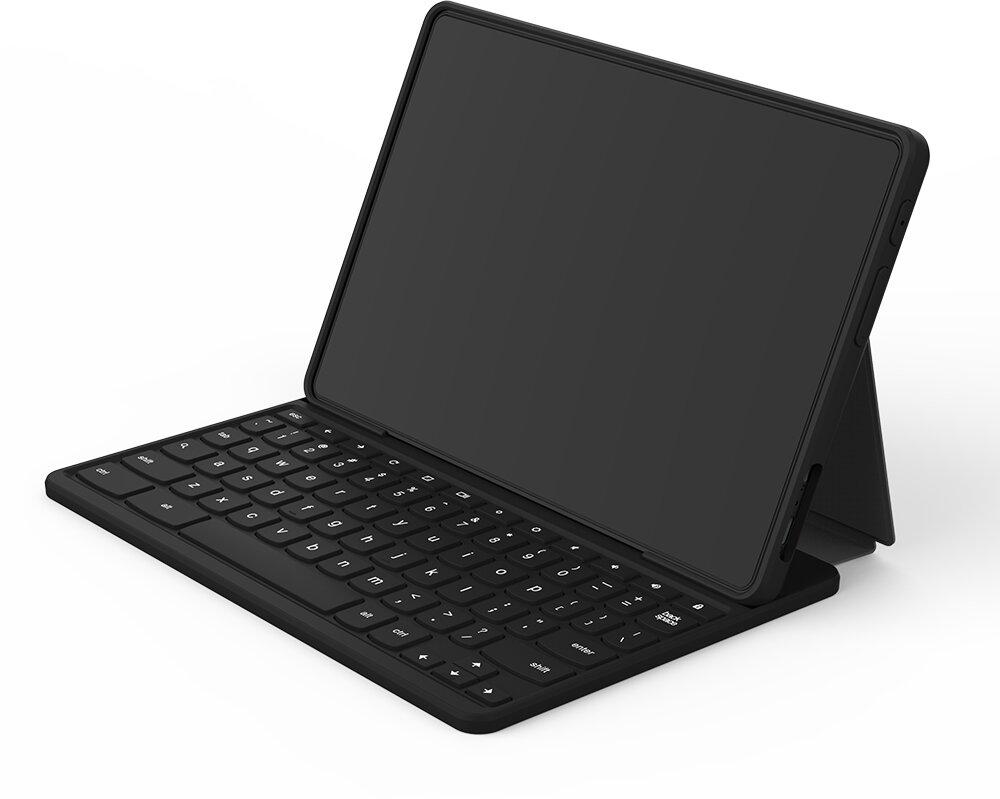 Pouzdro se připojí k zařízení pomocí pogo kolíků. Dodatečné magnety ji drží pevně na svém místě, přesto umožňují rychlé a snadné odpojení. Při nošení zařízení chrání zepředu i zezadu. A když potřebujete psát, jednoduše ji rozložíte. Jde tak mimo jiné o jednoduché, účelné překládací pouzdro. Možnost nastavení různých úhlů si snadno najdete polohu, která vám při psaní nejvíce vyhovují.