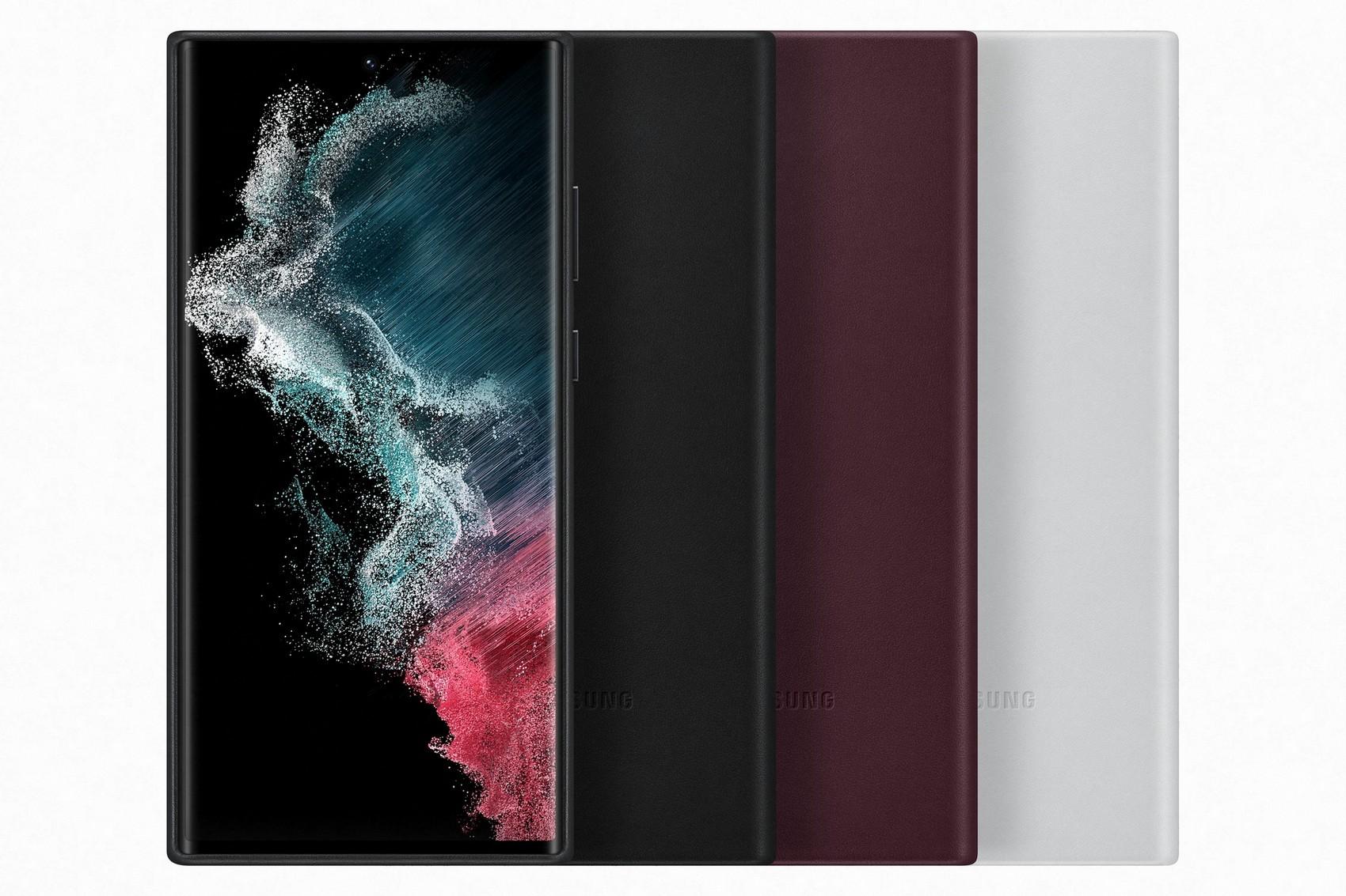 Pouzdro pro Samsung SAMSUNG Kožený zadní kryt pro S22 Ultra Burgundy