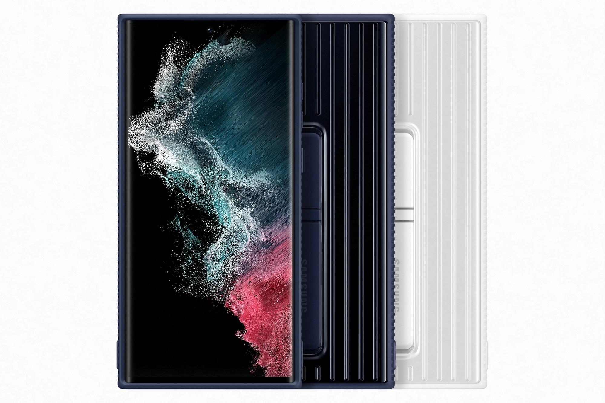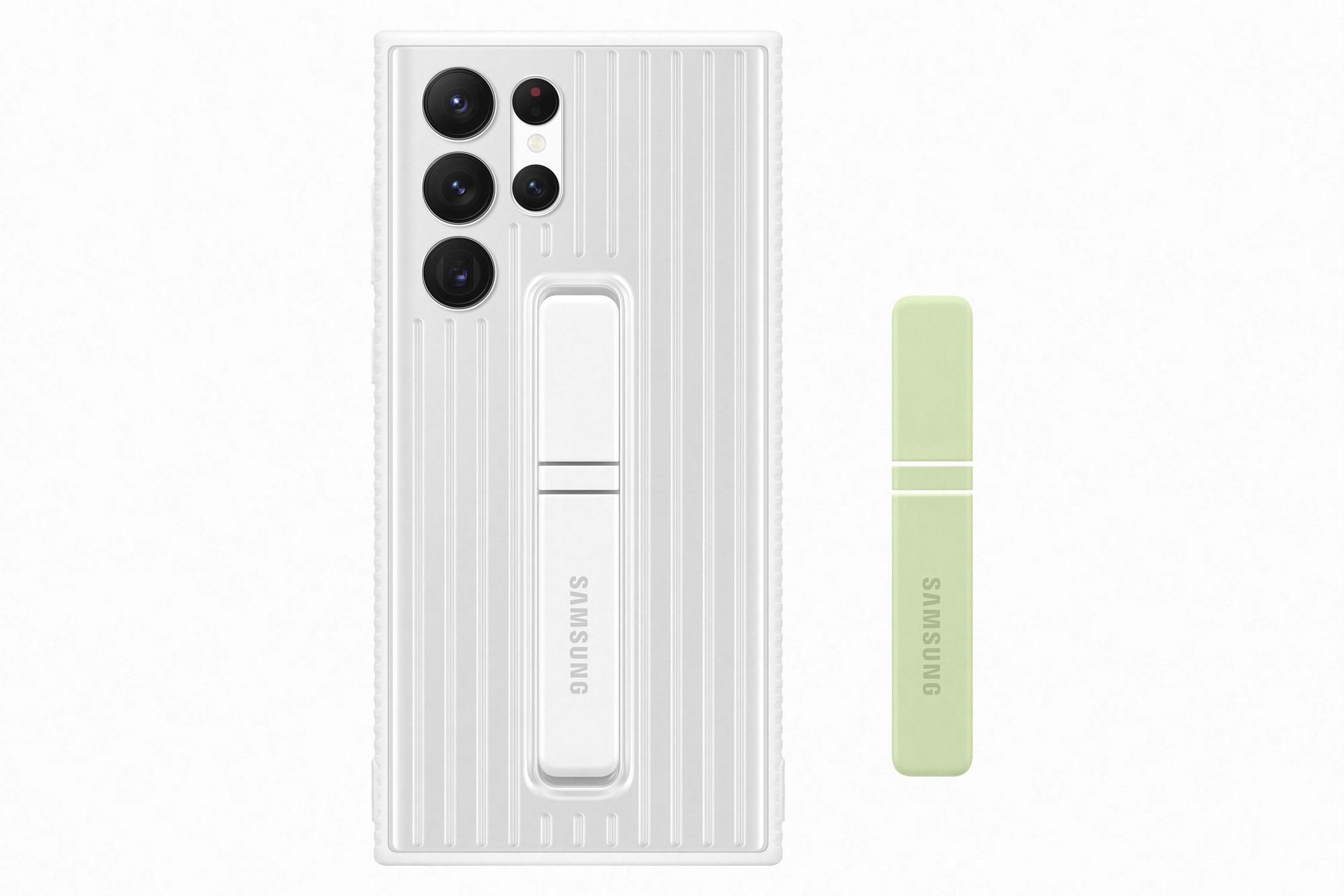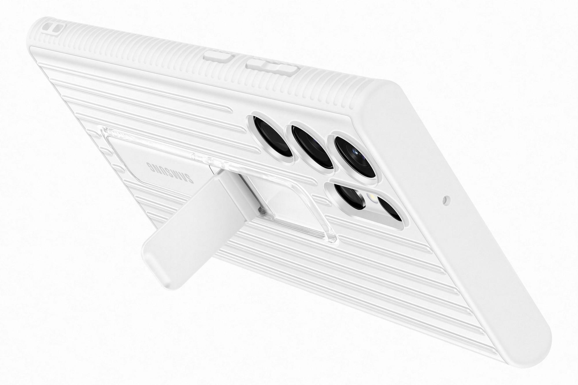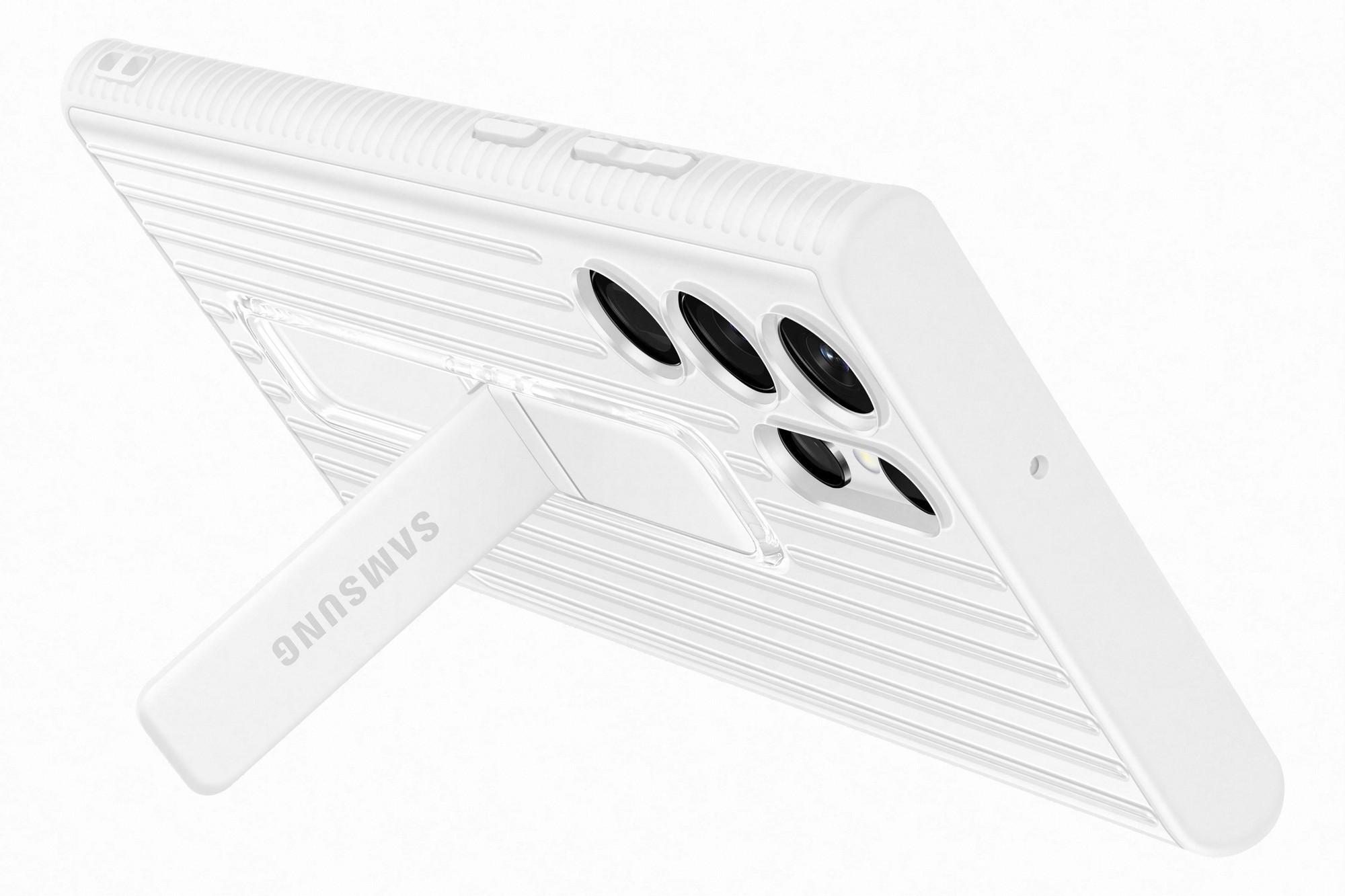 Pouzdro pro Samsung SAMSUNG Tvrzený ochranný zadní kryt se stojánkem pro S22 Ultra, bílé (white)