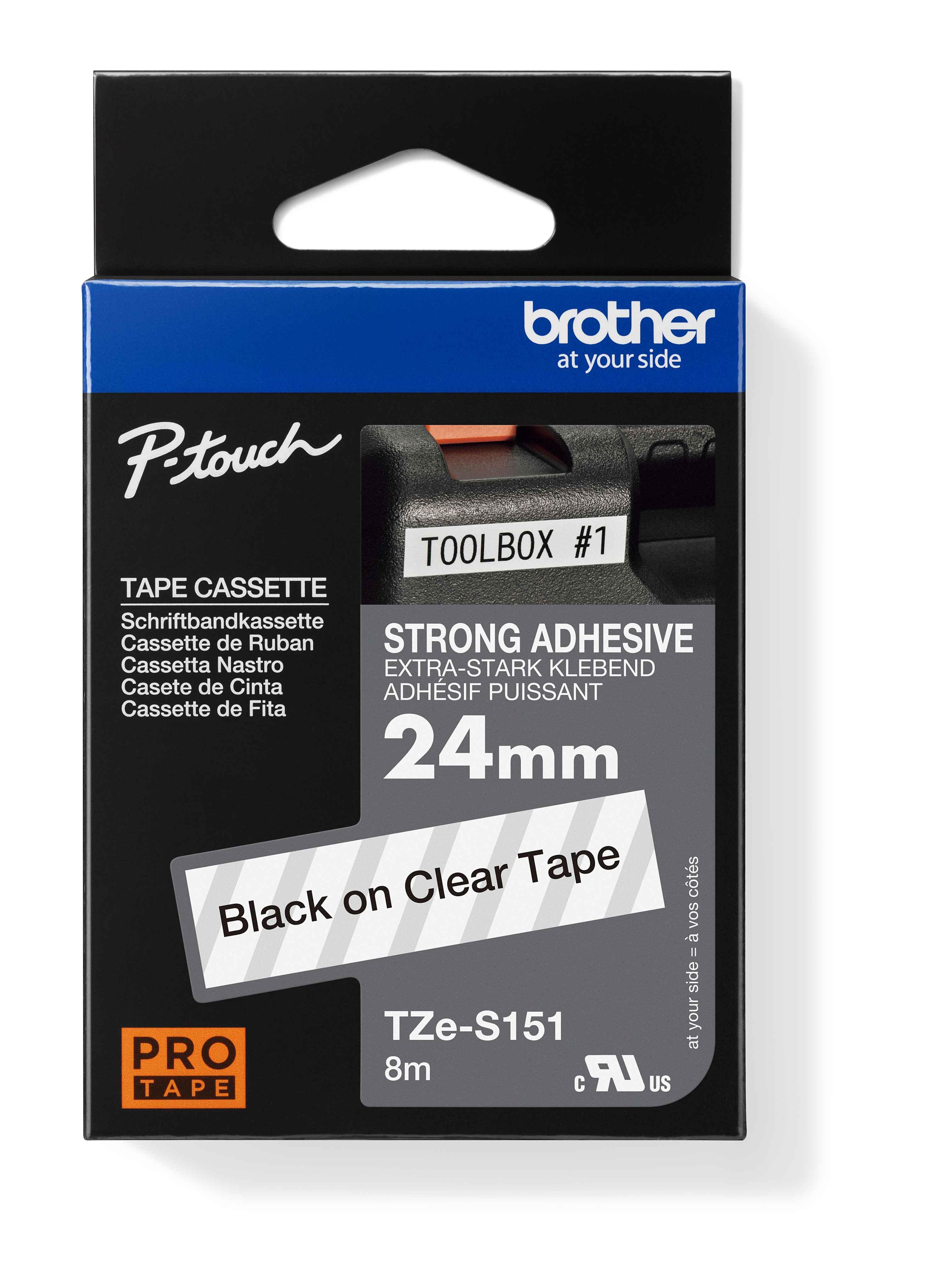 Originální kazeta s laminovanou páskou TZe-S151 kompatibilní s širokou řadou tiskáren Brother P-touch je zvláště všestranná díky své snadno čitelné černé a průsvitné barvě - ideální pro domácnost domácnosti, kancelář a další pracoviště.