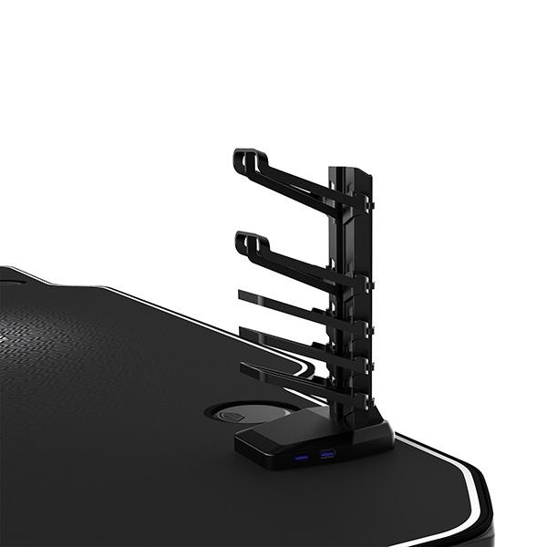 Zadní část stolu je vybavena dlouhou policí pro kabelový management a napájení. Na ploše podložky jsou 2 otvory, kterými mohou být všechny kabely vedeny do tohoto oddílu.
