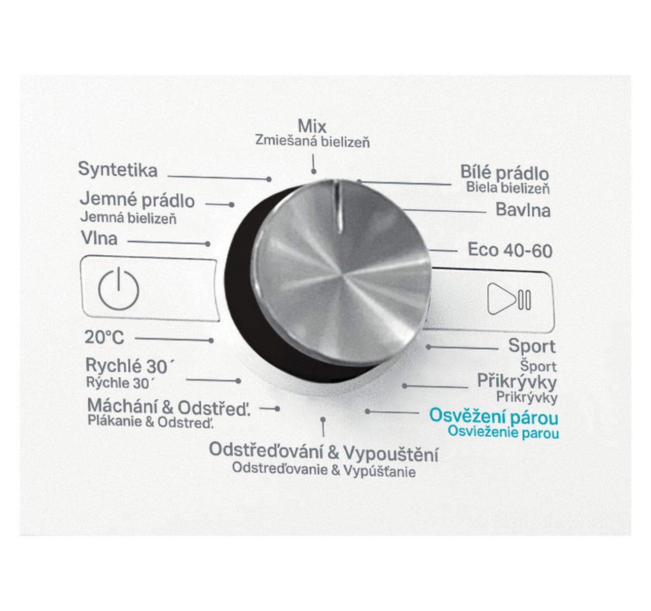 - přídavné funkce: clean+, intenzivní máchání, odložený start, FreshCare+, nastavení teploty, nastavení odstřeďování